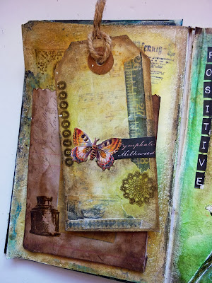On this side I created a pocket with a Tim Holtz In The Bag die. I am going to create loads of pockets for the pages in this journal with lots of tags to write those positive thoughts/happenings on..